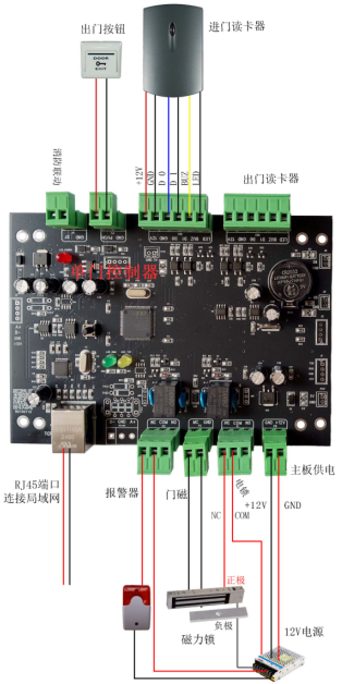 1、通讯配置丰富:RJ45网络端口1个,TCP/IP通讯SOCKET多线程4路,RS485通讯2路,TTL(RX,TX)2路,可扩展RS232、RS422、CAN、ISP、IIC等等;WG格式读卡器进门2套,RS485格式读卡器进出2个;